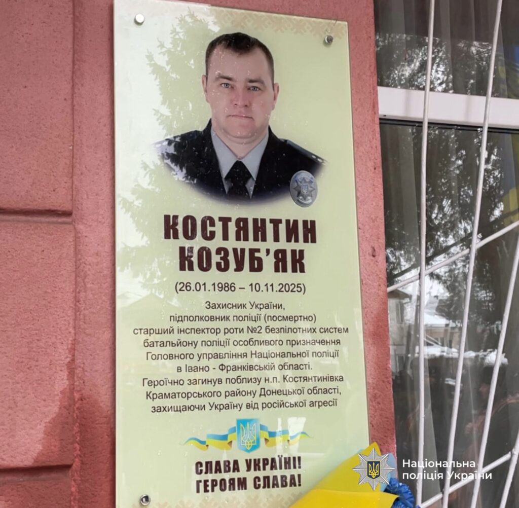 Дошку встановили на фасаді будівлі як знак пошани до офіцера, який віддав життя, виконуючи службовий обов’язок під час захисту України від російської агресії. Костянтин Козуб’як загинув 10 листопада 2025 року поблизу Костянтинівки на Донеччині внаслідок ворожого обстрілу.
