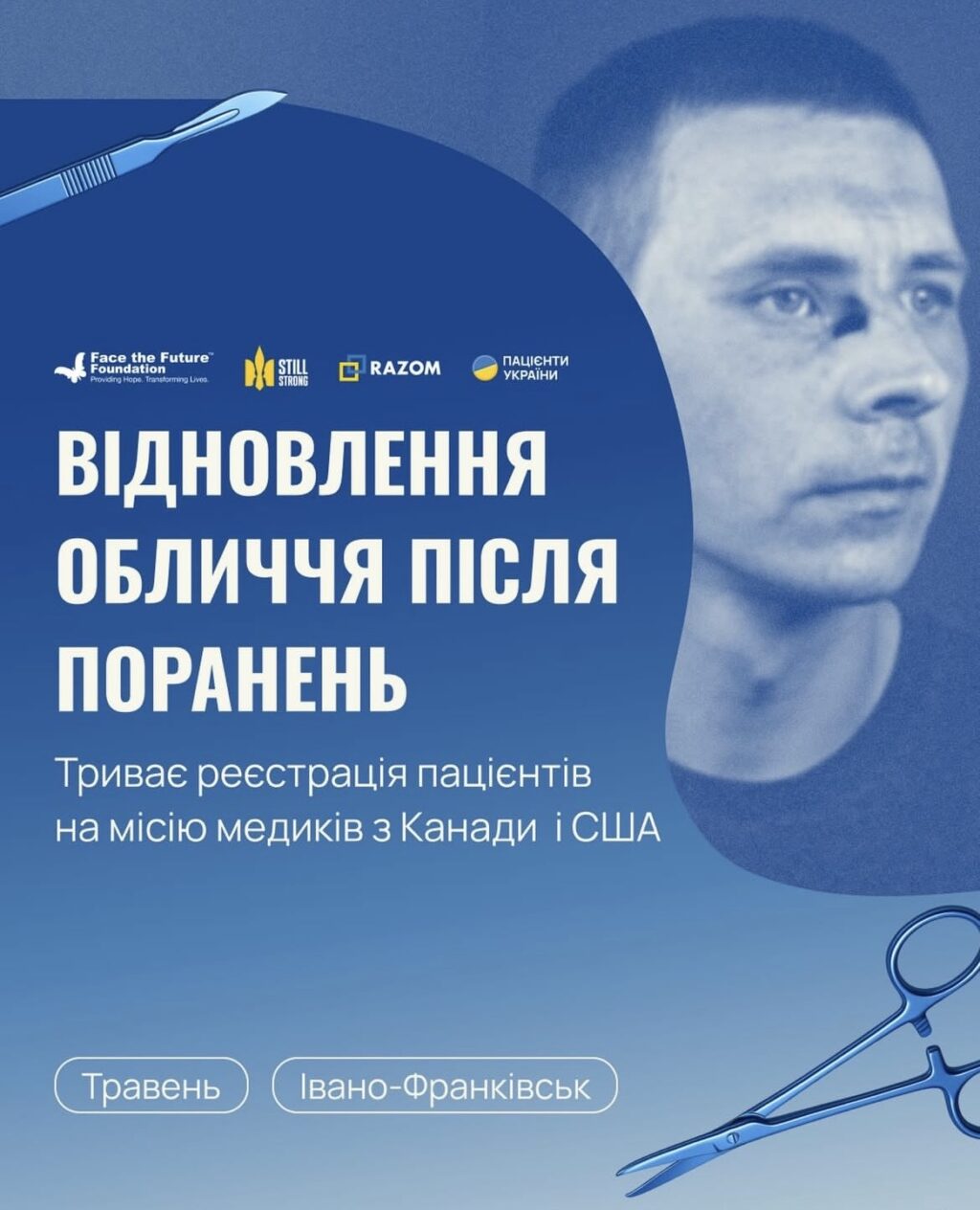 У травні 2026 року в Івано-Франківську відбудеться чергова медична місія Face the Future Ukraine, під час якої військові та цивільні пацієнти з пораненнями обличчя зможуть отримати безкоштовні реконструктивні операції для відновлення зовнішності та здоров’я.
