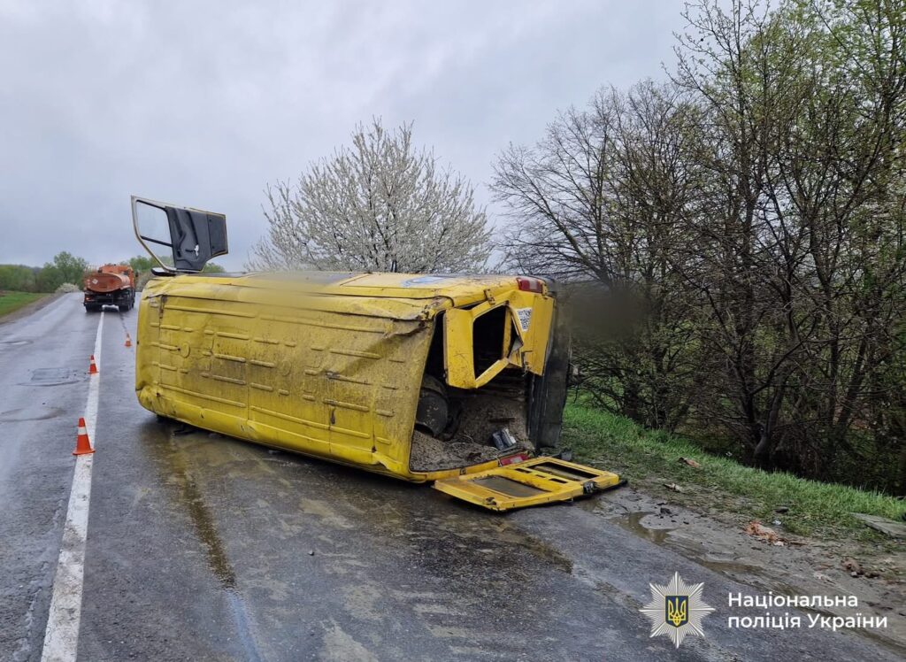 На місце події оперативно прибули рятувальники та правоохоронці. За попередніми даними, водій мікроавтобуса «Mercedes Sprinter» не впорався з керуванням під час руху на підйомі, внаслідок чого транспортний засіб перекинувся.